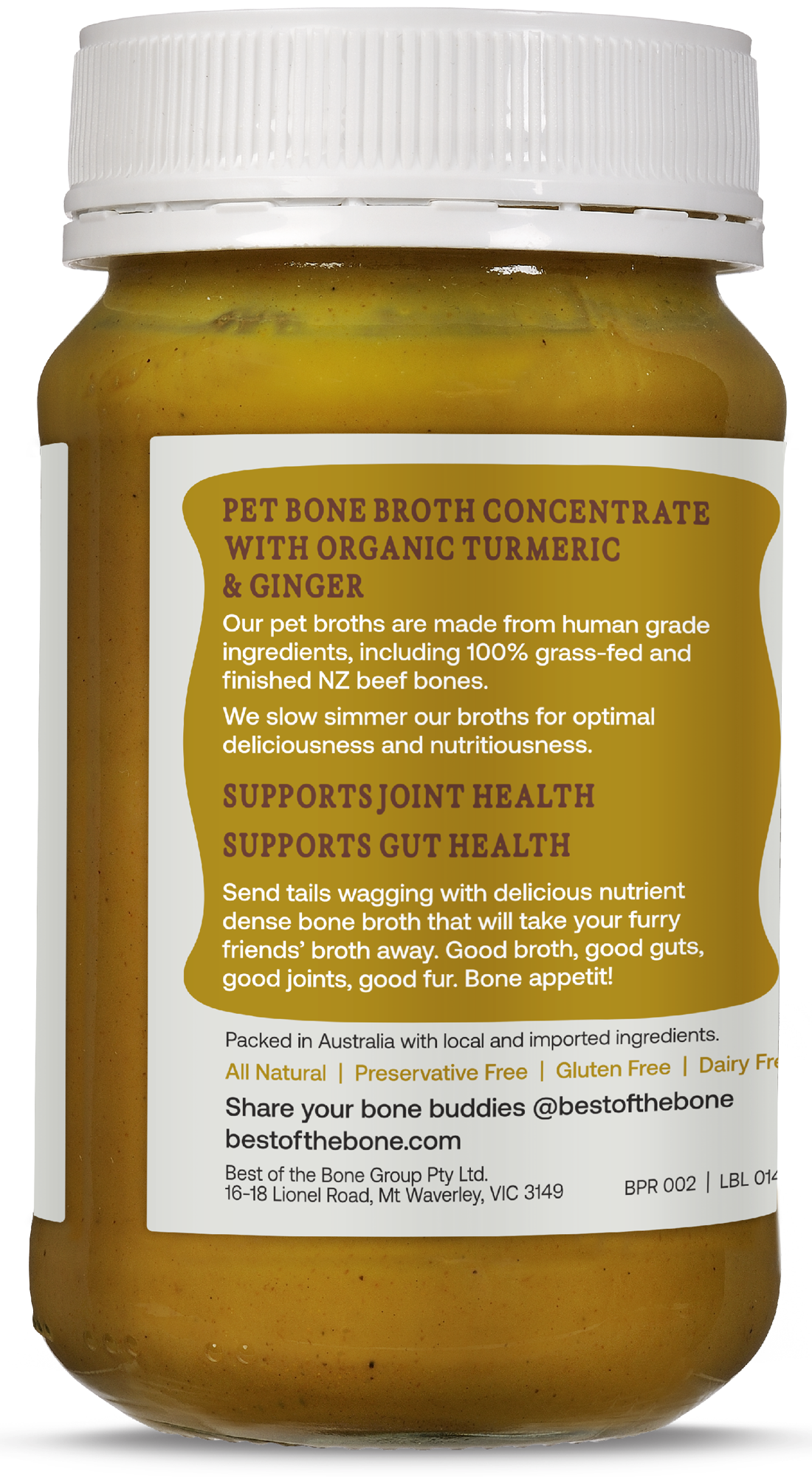 Collagen Protein Dense Pet Bone Broth Concentrate with Turmeric & Ginger.