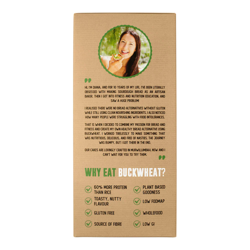 Ingredients: Organic Buckwheat (70%), Himalayan Brown Rice, Hemp Seeds, Oregano, Sea Salt. (Gluten Free)