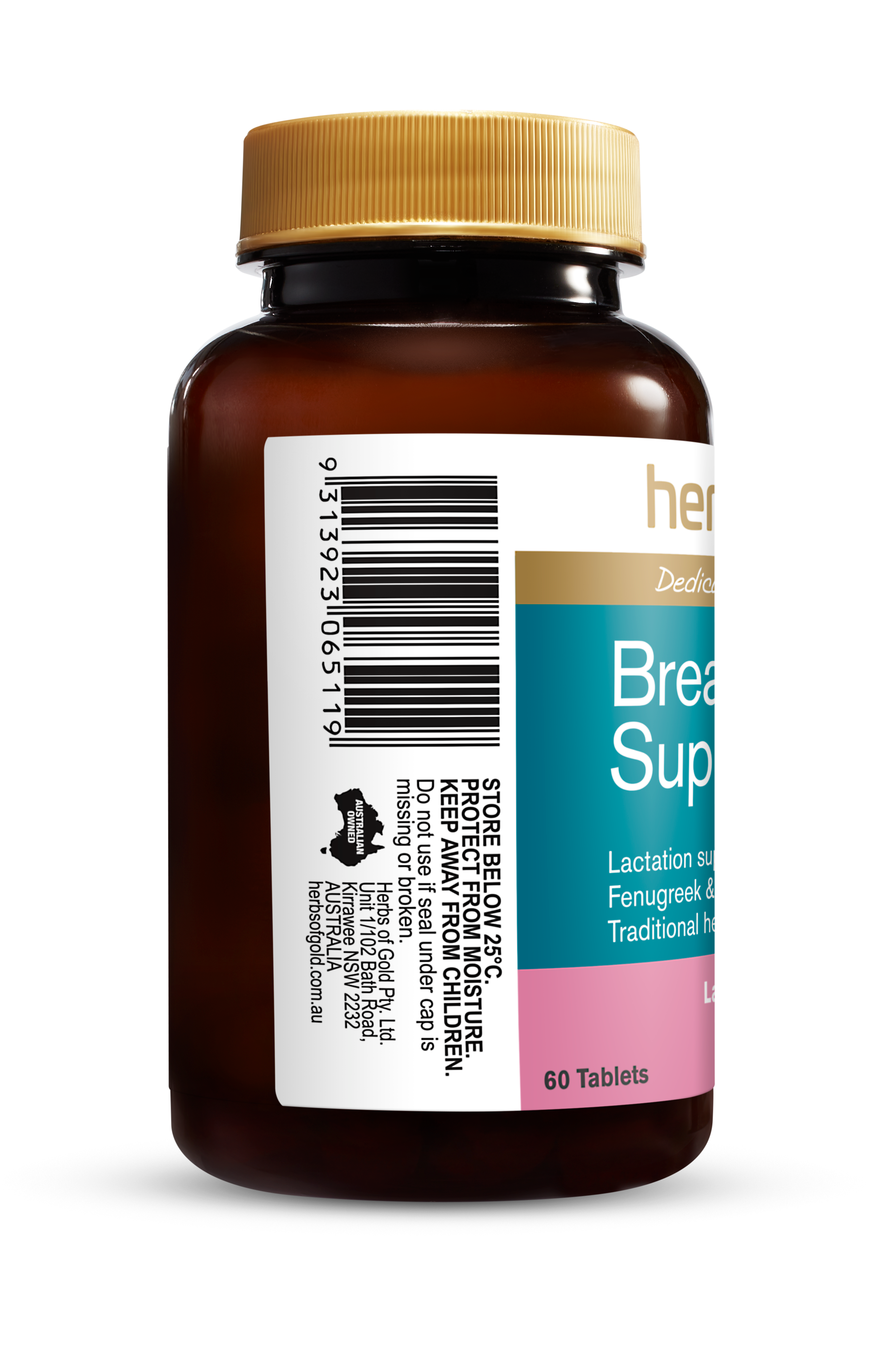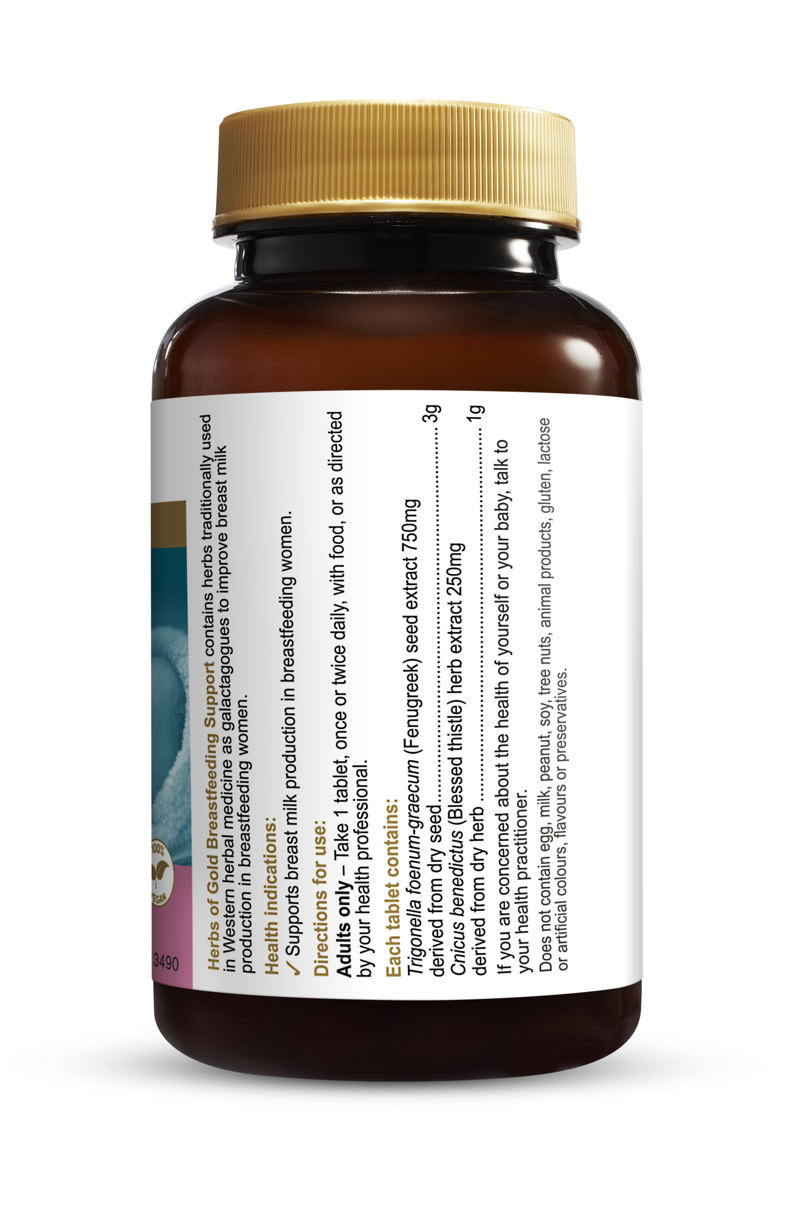 Herbs of Gold Breastfeeding Support contains herbs to support breast milk production in breastfeeding women.