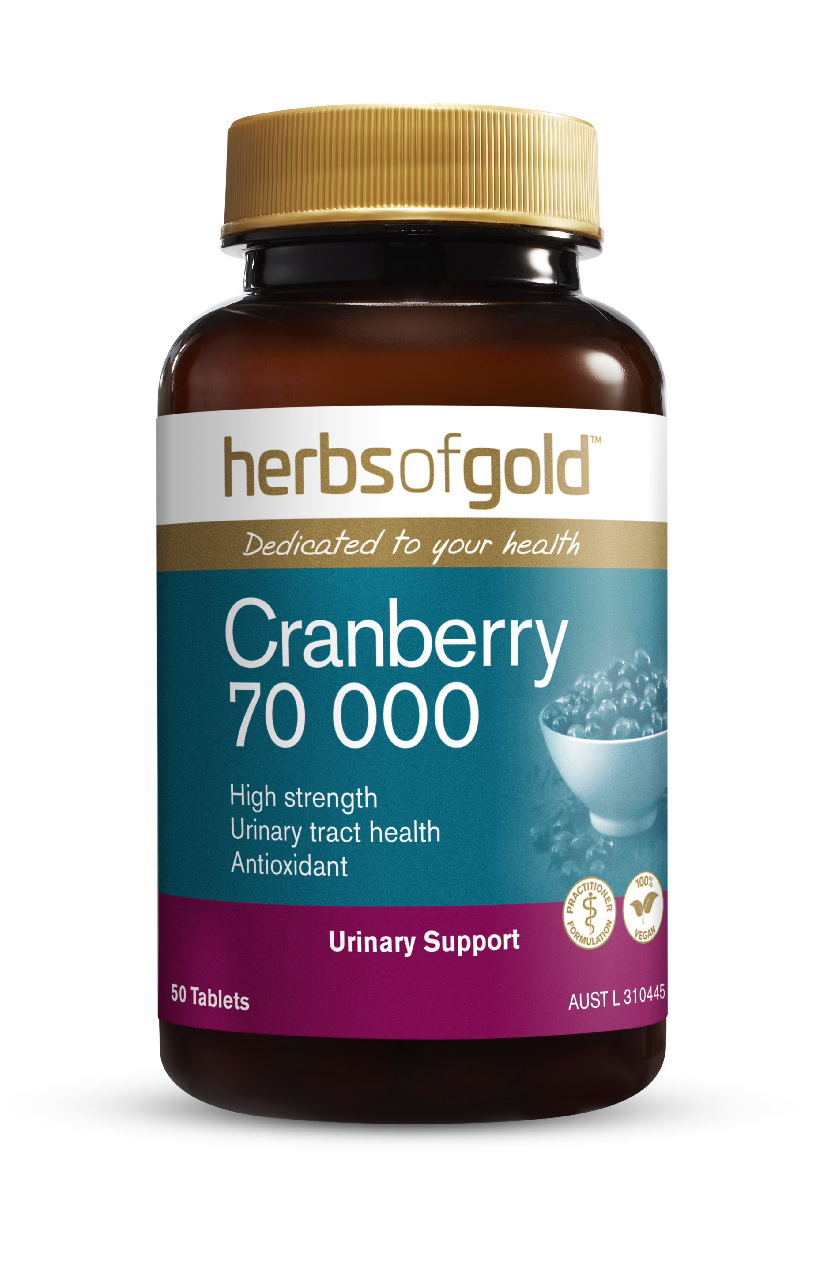 Herbs of Gold Cranberry 70 000 is a high-strength supplement specifically formulated to support urinary tract health.