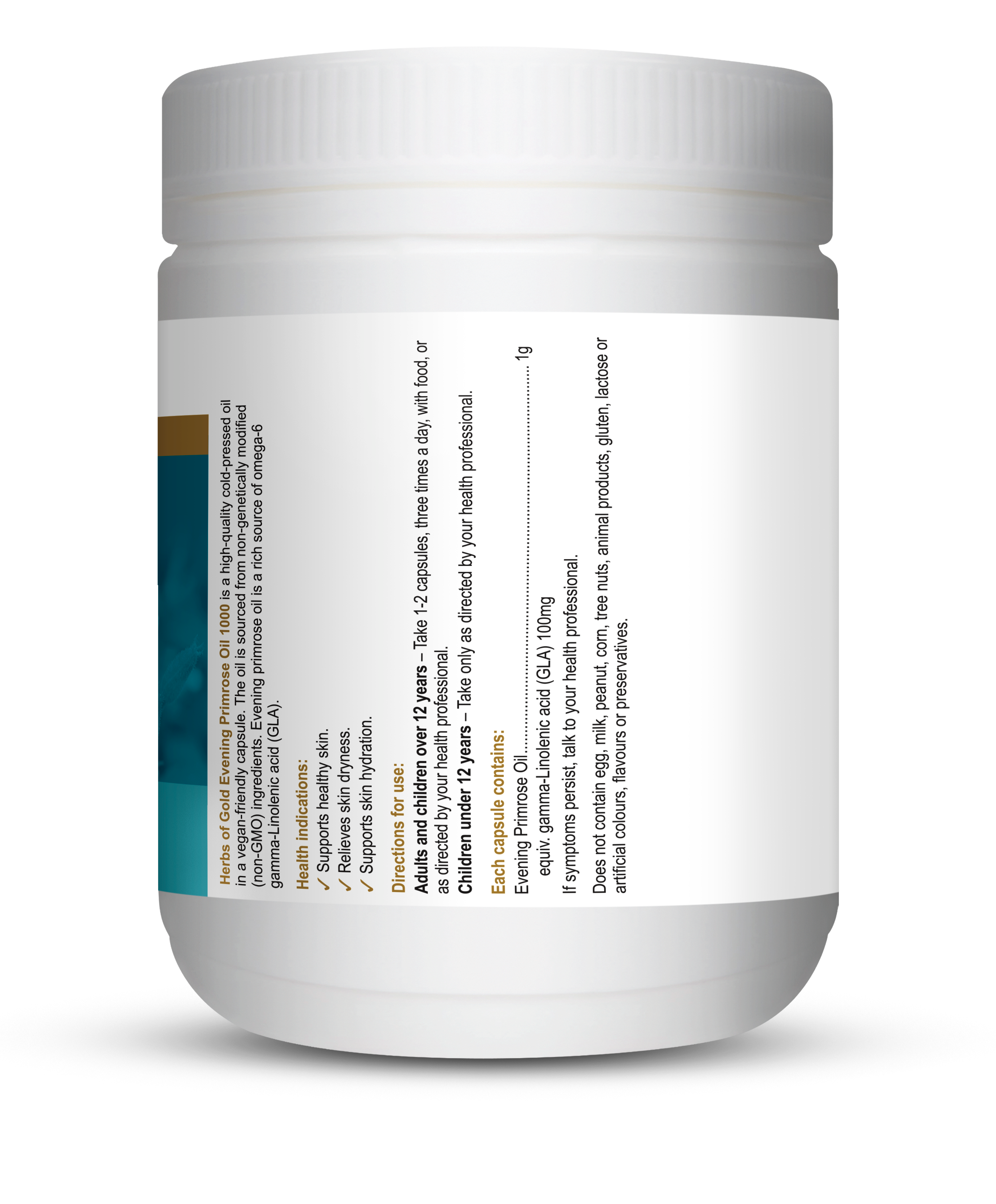 Herbs of Gold Evening Primrose Oil 1000 is a high-quality, cold pressed oil available in a gelatin-free, Vegetarian capsule.x