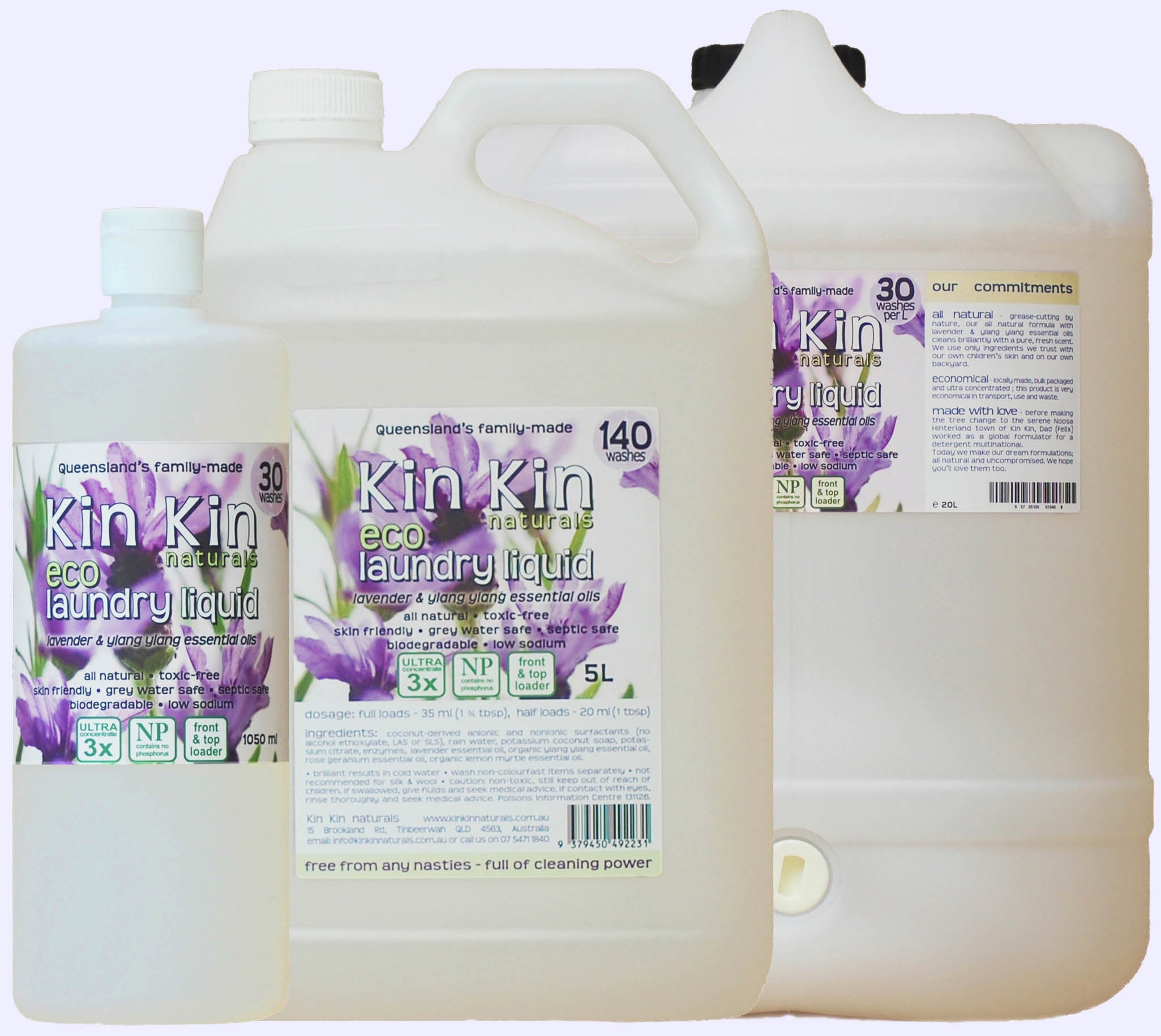 All natural, family-made in Queensland, and it works! Perfectly safe for people & planet, including grey water and septic systems, for both FRONT and TOP loaders. Economical: ultra concentrated, no need to use more than 35ml for a full load. Made with love in the green and serene Kin Kin, in the Noosa Hinterland.
