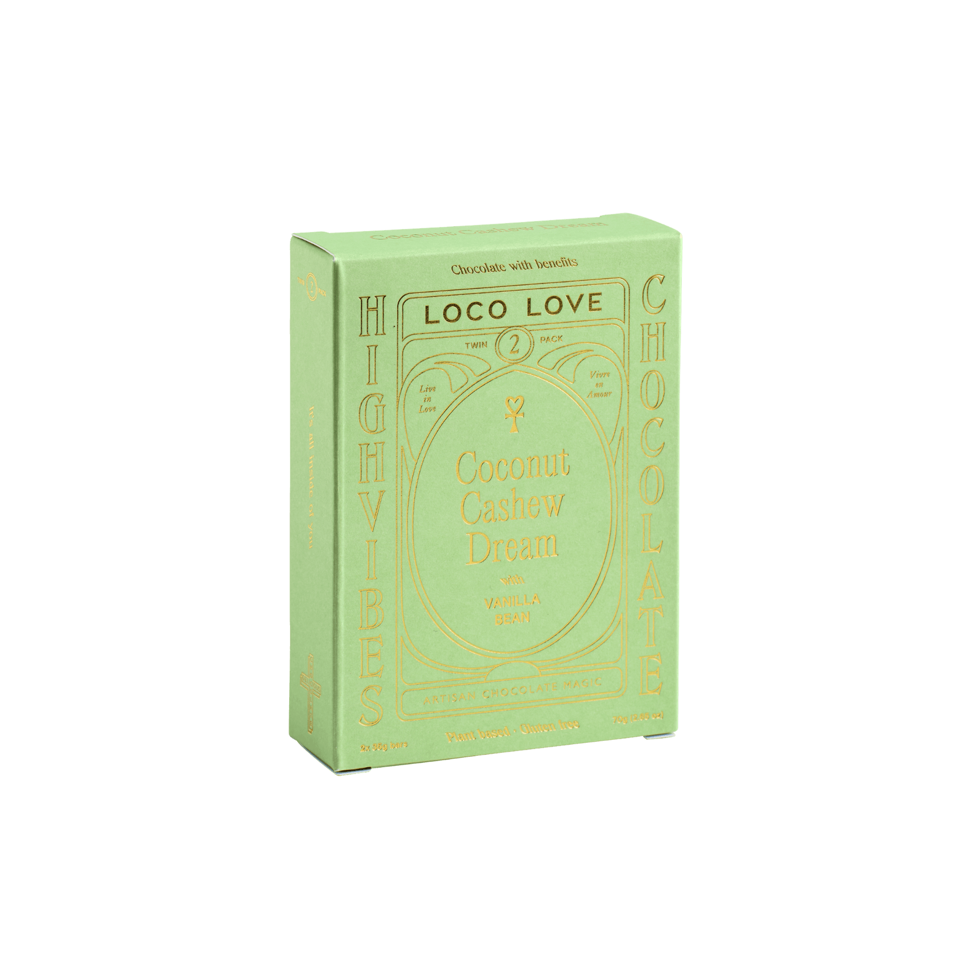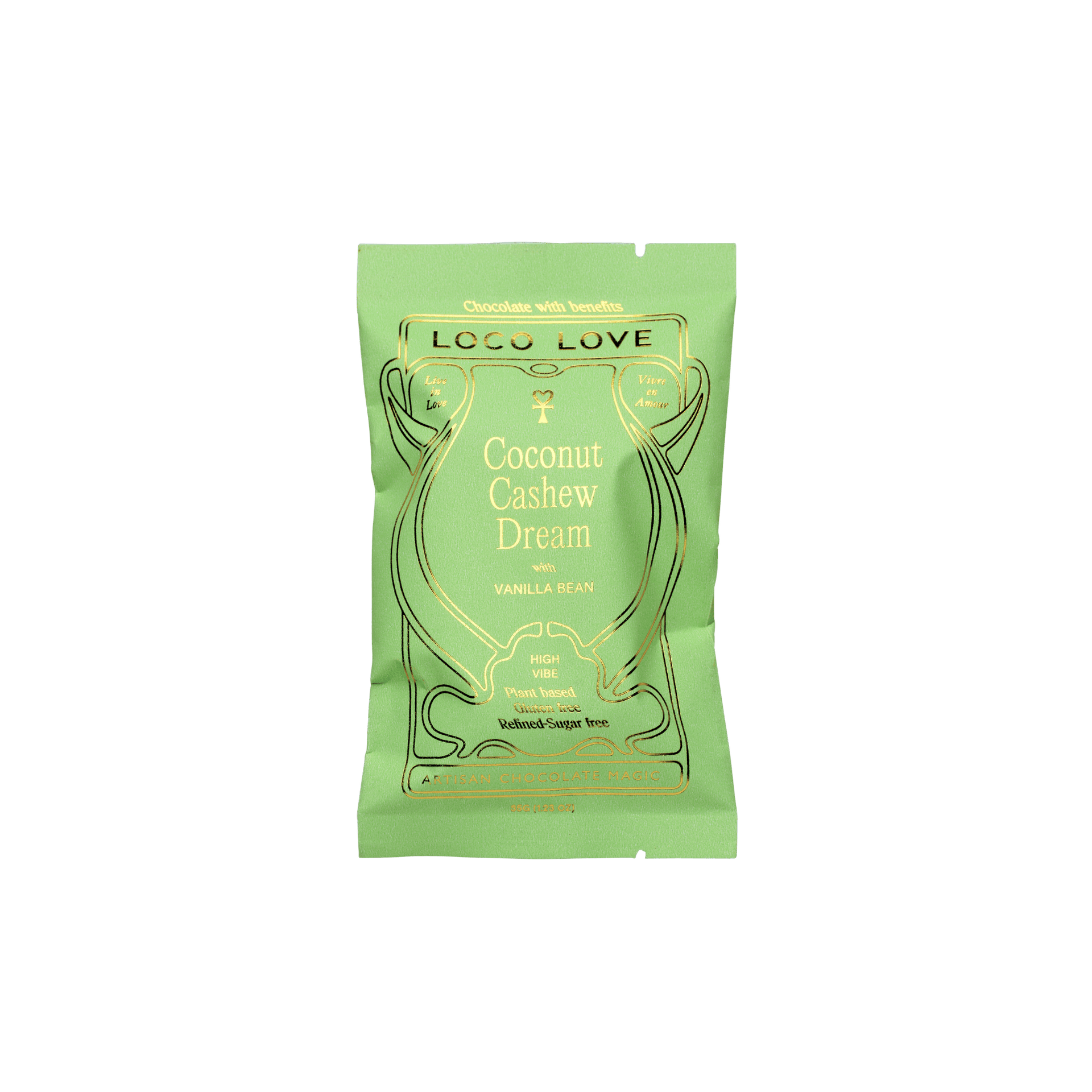 A coco-nutty caramel with chunks of lightly toasted cashews; slightly salted with a chewy texture and a whole lotta’ love. Delightfully enhanced with aromatic vanilla bean and enrobed in dark 70% Peruvian cacao. Take a bite and feel the magic.