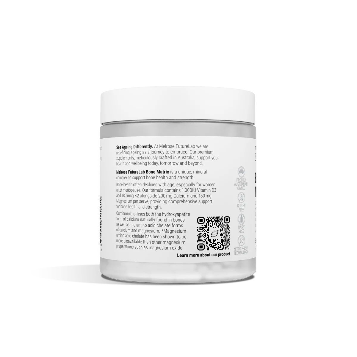 A unique, mineral complex to support bone health and strength. Bone health often declines with age, especially for women after menopause. Our formula contains 1,000IU Vitamin D3 an