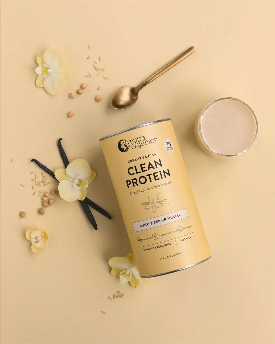 Made with the purest wholefood ingredients, Clean Protein contains sprouted and fermented pea & brown rice proteins alongside digestive enzymes to provide an easily digested, complete amino acid profile. With naturally occurring BCAAs, magnesium, iron and phosphorus to support electrolyte balance, recovery, protein synthesis and strength.