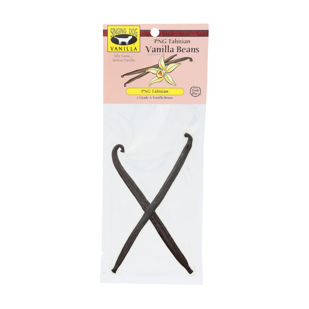 Embark on a journey of exquisite flavor with Singing Dog Vanilla’s Tahitian Vanilla Beans, renowned for their unparalleled quality, tropical aroma, and distinctive sweet, fruity taste. Our PNG Tahitian Vanilla Beans are sourced from our family of fair trade, organic, vanilla-growing partners. These beans set the standard for excellence in plumpness, fragrance, moisture content, and quality. This species of vanilla was brought to Tahitia by the French in 1948 and has been cultivated there ever since. From there, its range has expanded to other islands in the best vanilla-growing regions, including Papua New Guinea (PNG).