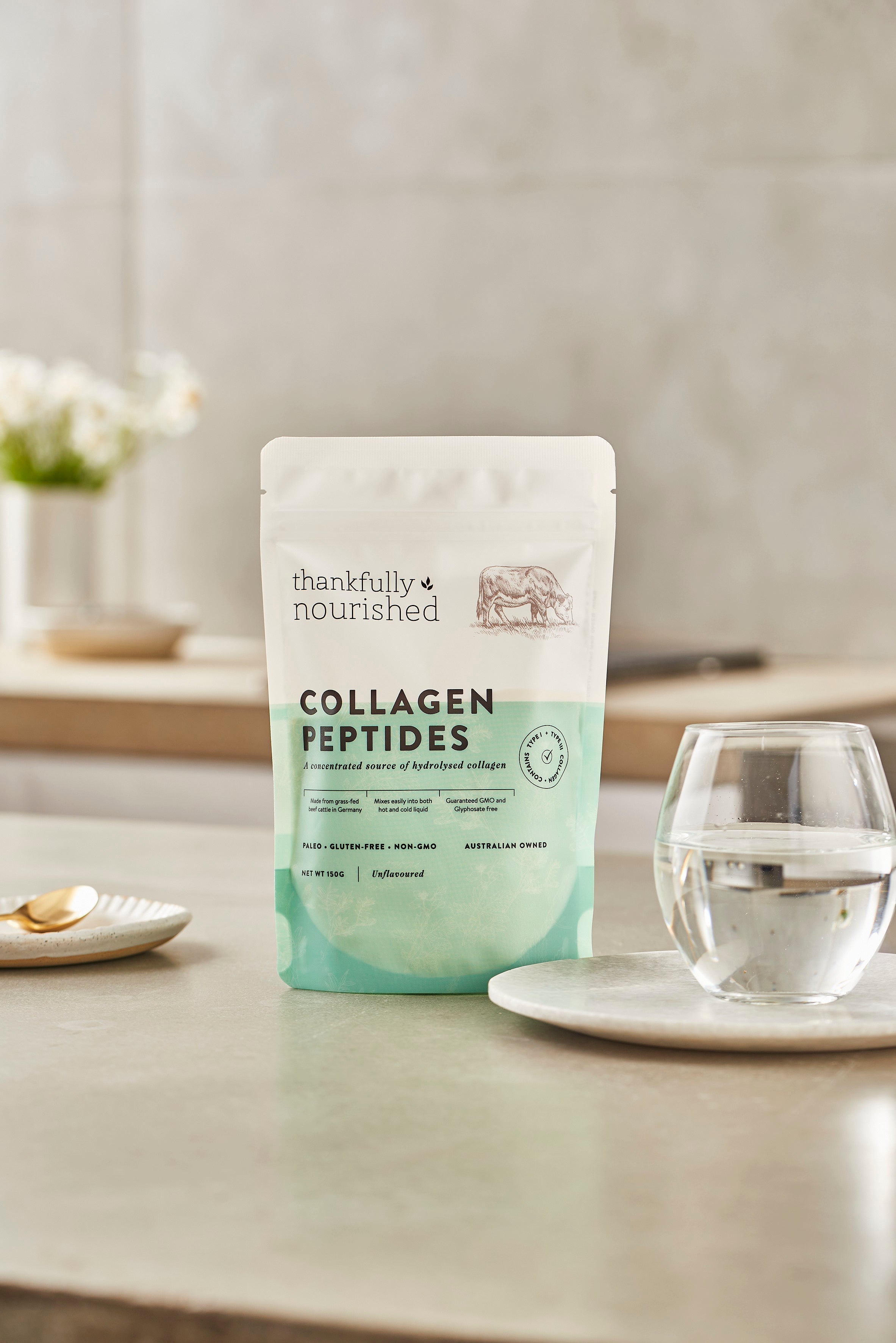Our natural ability to produce connective tissue diminished after the age of 25. Its one of the reasons why we start to look older and may begin to experience joint problems. Taking collagen peptides is one way to support your body, particularly your joints, ligaments and skin. Thankfully Nourished Collagen Peptides are a pure source of hydrolysed Australian bovine collagen, enzymatically fermented into peptides making it highly bioavailable and easy for your body to use. Thankfully Nourished Collagen contains both Type I and Type III collagen, making it perfect for supporting the health of joints and bones as well as skin, hair and nails.