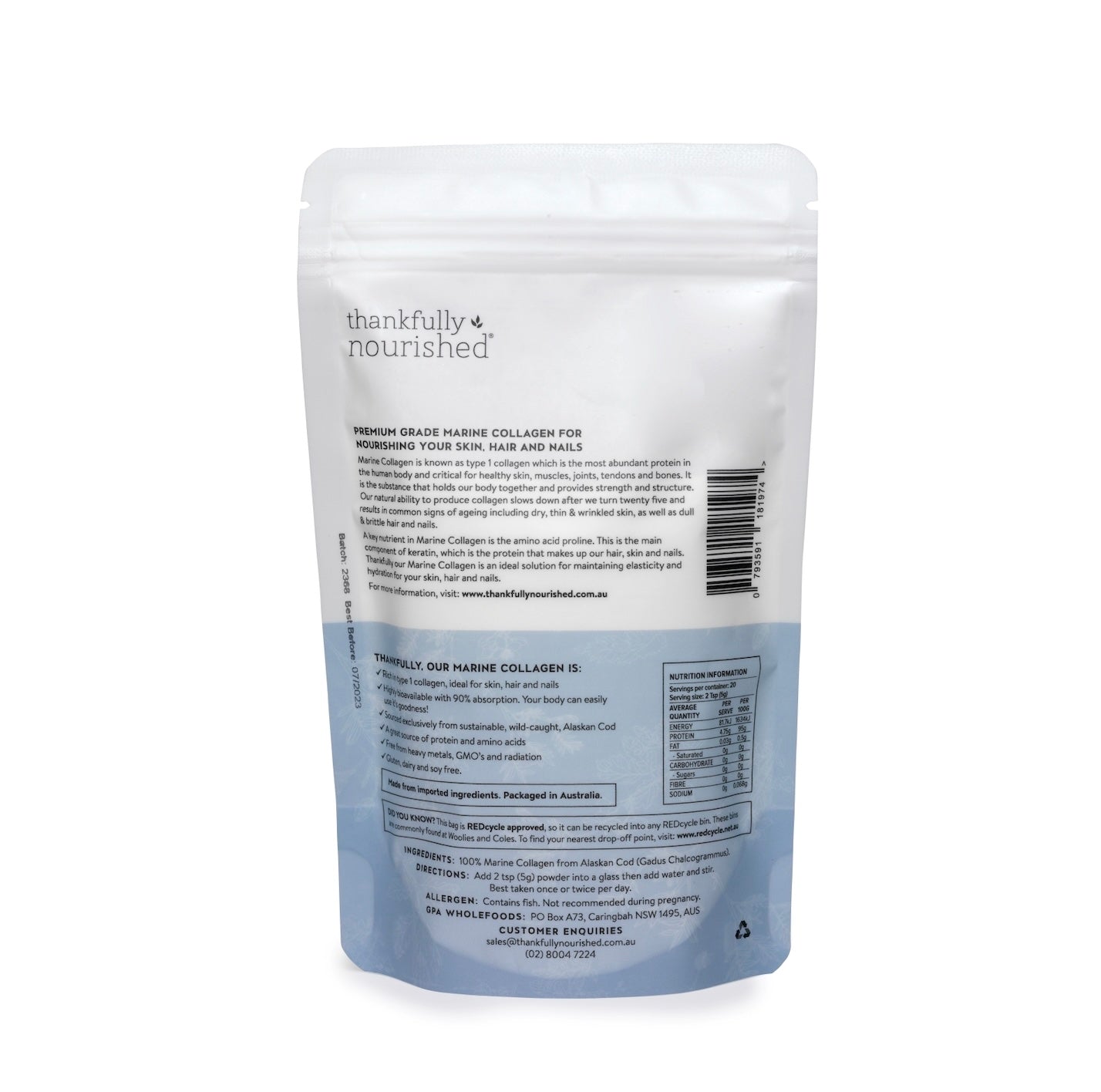 A premium grade marine collagen, perfect for nourishing your skin! Thankfully Nourished Marine Collagen is a premium grade collagen, derived from Alaskan Cod and extracted using a natural hydrolysis process using enzymes instead of chemicals or heat. The resulting collagen is virtually tasteless, odourless and free from impurities. Thankfully Nourished Marine Collagen is your best choice of nourishment for healthy skin, hair and nails.